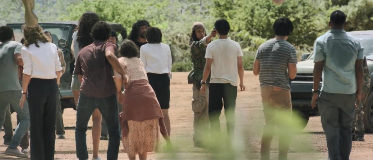 一开始电闪雷鸣,飞机路颠簸,乘客都飘了起来,是空难片;机长力挽狂澜紧急迫降,是荒岛求生片;军阀绑架,是丛林营救片;雇佣兵从天而降,巴雷特大狙,枪枪爆头,是枪战片。这就成好莱坞爆米花爽片。