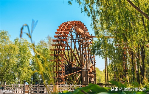 第二个区域为水车园,这里修建了池塘、雕像,还有树木花卉等,环境很是优美,几十架水车在池塘周围和黄河里运行着,场景十分好看,可以拍照游玩。在这里漫步放松,观看河滨美景也十分不错。