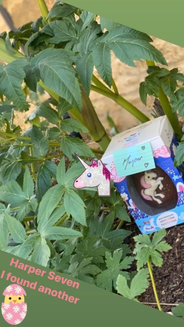她找到了老爸精心为她准备的——她最喜欢的独角兽彩蛋,上面不仅写了她的名字"哈珀",还画了两颗爱心。