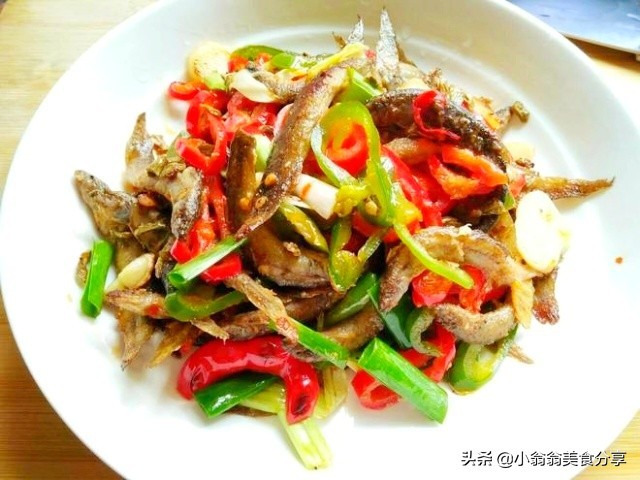 4、锅中留底油,放入姜蒜爆香,接着放入青红椒翻炒均匀,然后再把炸好的泥鳅倒回锅中翻炒,最后加上葱段,味椒盐,盐翻炒后即可装盘出锅。