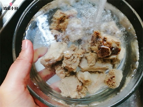 排骨煮好后,用清水冲洗干净。洗好后一定要控水,不然后面煎炸的时候容易溅油。