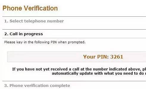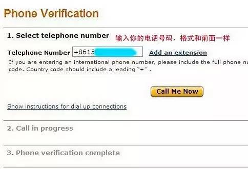 输入电话号码。点击“call me now” 会有美国致电验证PIN。