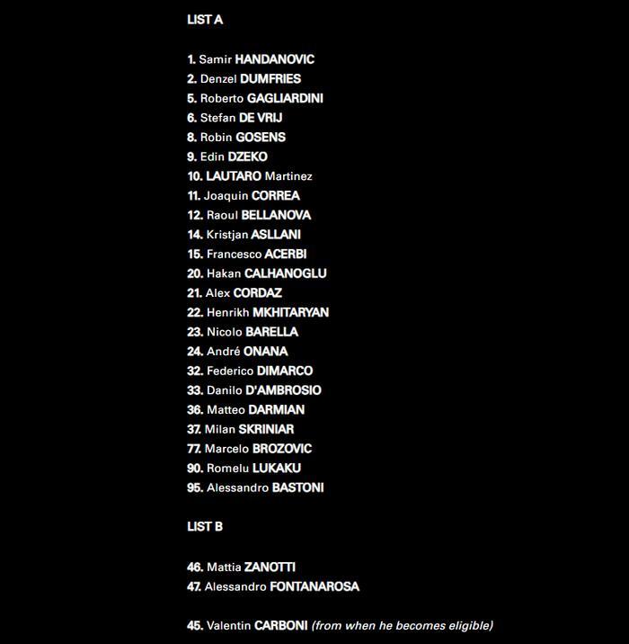 汉达诺维奇、邓弗里斯、加利亚尔迪尼、德弗莱、戈森斯、哲科、劳塔罗、华金-科雷亚、贝拉诺瓦、阿斯拉尼、阿切尔比、恰球王、科尔达兹、姆希塔良、巴雷拉、奥纳纳、迪马尔科、丹布罗西奥、达米安、什克里尼亚尔、布罗佐维奇、卢卡库、巴斯托尼。