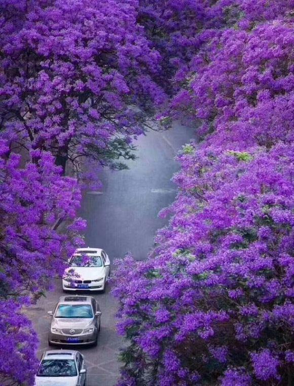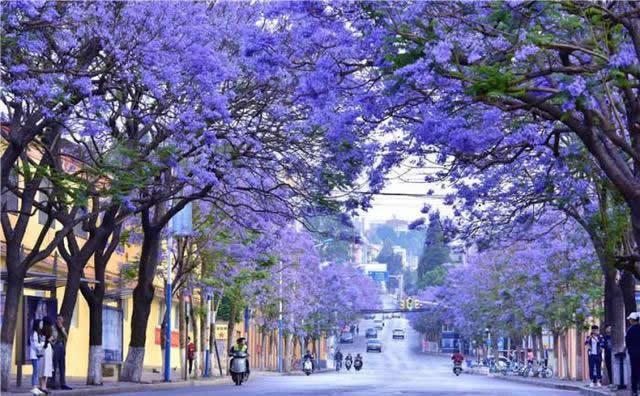 蓝楹花从3月中下旬开始,可持续开放到5月份,最美丽是4-5月的时候,然后花瓣渐落,所以整个春季它都会盛放,这种植物花量非常多,种一棵后开放时就比较惊叹了,何况是成排种植,开放时更是异常壮观,所以,云南昆明的蓝盈花也逐渐成了大家耳熟的网红花卉了。