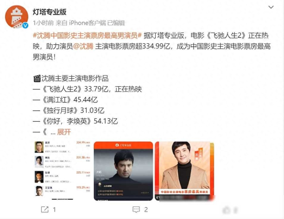超334.99亿元!这位演员成中国影史票房最高主演