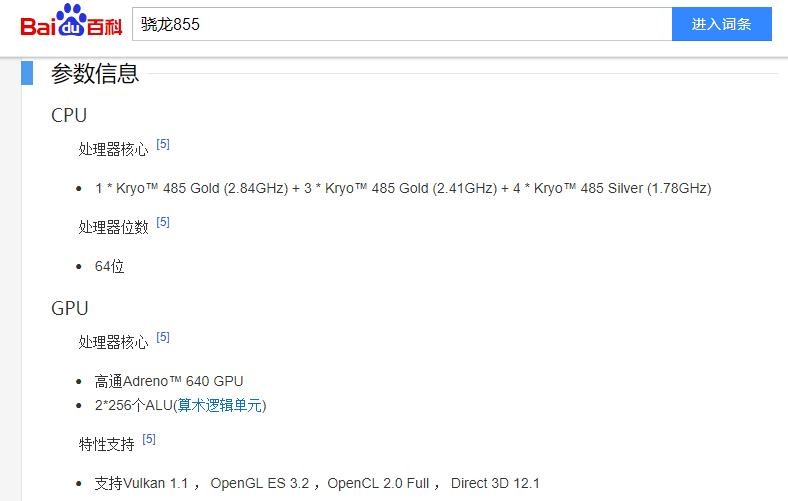 骁龙855的CPU为八核 1 * Kryo™ 485 Gold (2.84GHz) + 3 * Kryo™ 485 Gold (2.41GHz) + 4 * Kryo™ 485 Silver (1.78GHz)。一直以来八核处理器都无法高于2.0GHZ,但骁龙855整体水平达到如此高度,运行速度比一般四核的都高出不少。也就是说,骁龙的系统用一半的功力就足以支持大部分的软件正常运行。