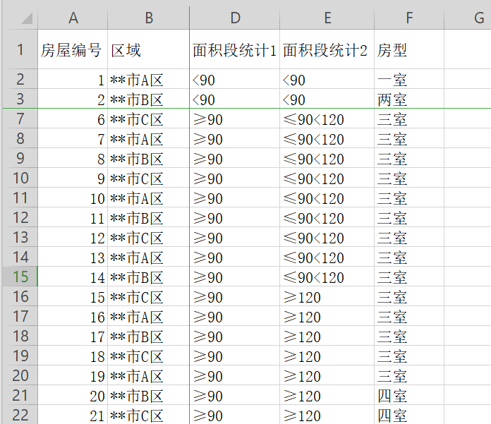 如果需要同时固定显示首行和首列,或者显示前面几行和前面几列,比如我们需要固定显示示例表格的前面3行和前面2列,则操作步骤如下。