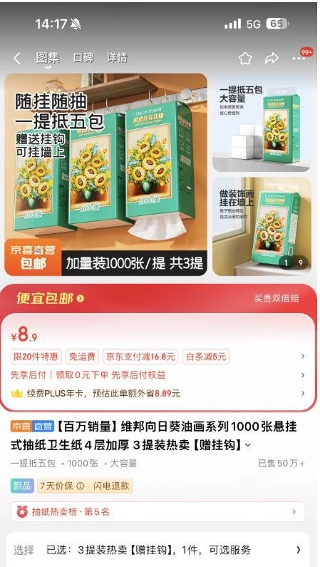 电商卫生纸价格“卷”出新低 百万单爆款抽纸5毛钱一包