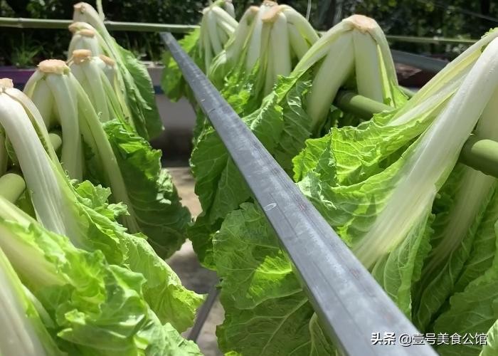 第四步:把所有的小白菜清洗干净,然后按照下面这张图的操作,放在正值大太阳的天气中,暴晒三天,每天日照时间不能低于8个小时。对于这步来说,操作之前可要好好看天气预报哦。