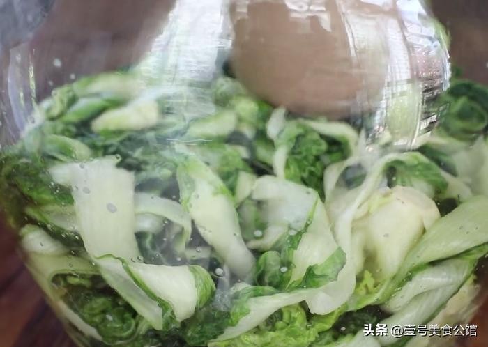 第三步:之后准备一个平时腌菜的泡菜坛子,把脱水的小白菜紧实的压制在坛子中,盖上盖子,腌制20天。
