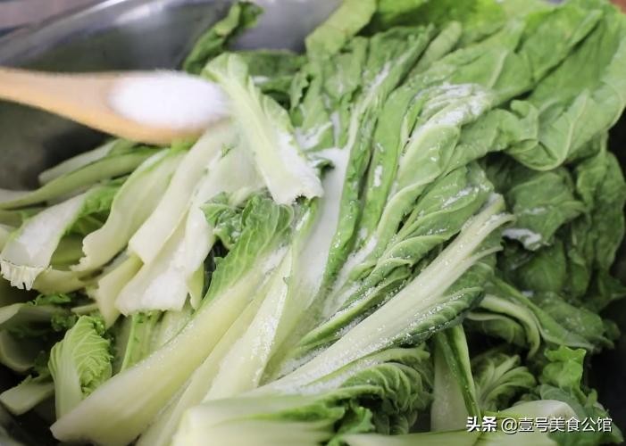 【准备原料】:小白菜六斤,盐120克(每多一斤菜,就加20克盐)。