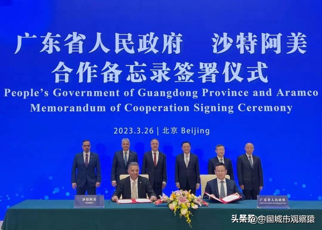 今年3月26日,广东省人民政府与沙特国家石油公司(沙特阿美)签署合作备忘录。提出在多个领域探索投资机会的合作框架,包括能源合作、研究与创新、产业项目、金融合作、人才交流等方面。