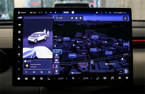 车机方面,极氪MIX采用了一款 15.05 英寸的 2.5K 分辨率的车机屏幕,显示效果非常的细腻,也非常好用,芯片采用的是高通的8295,而且它的“Hi,EVA” 也加上了大模型,都是非常聪明的。此外,中控屏幕还有一大亮点,就是它可以手动的去旋转。司机这一侧的角度会小一些,朝向副驾的角度偏移非常的大,可以达到 70 多度。如果坐在副驾去看电影,可以把屏幕转过去,非常方便。