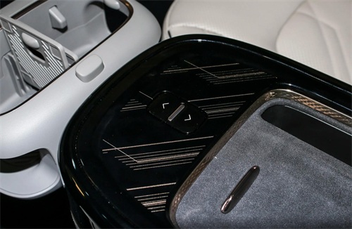 极氪MIX的中岛部分也是有电动滑轨的,你可以通过调节,把它向前或者向后移动,包括座椅旋转的时候,它也会自动的调节,非常的方便。中岛也有一个放手机的地方,有无线充电功能,甚至这个中岛可以完全拿下来替换冰箱等模块。所以在拓展性方面,极氪MIX的设计师真是下了不小的功夫。