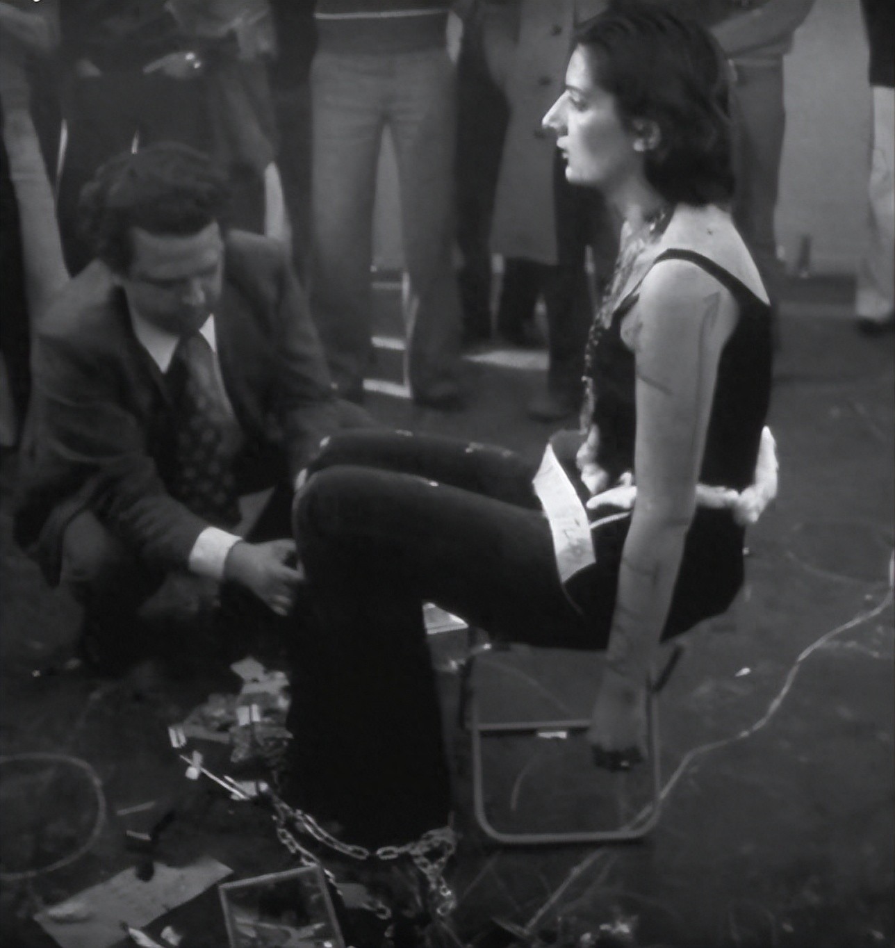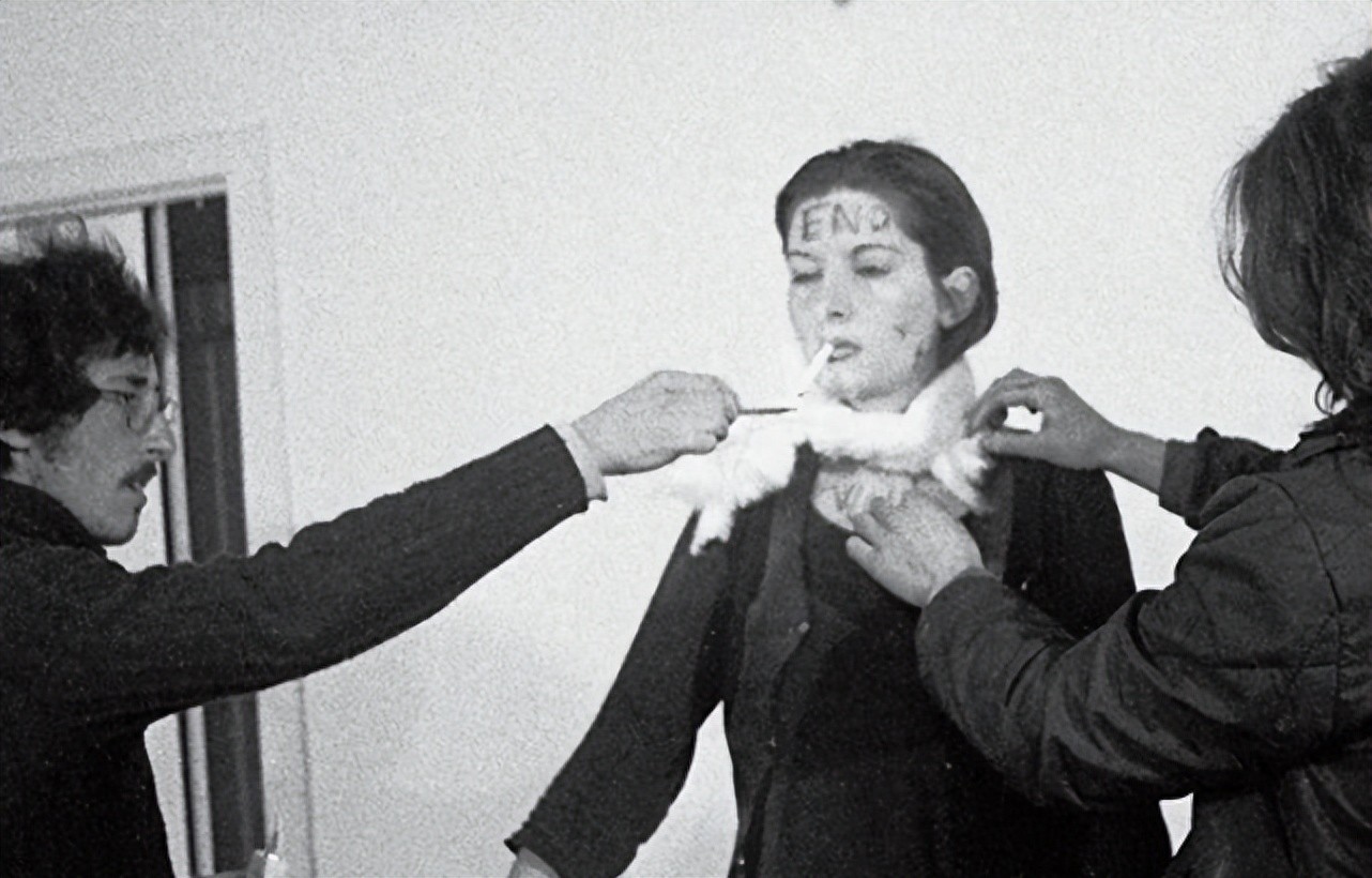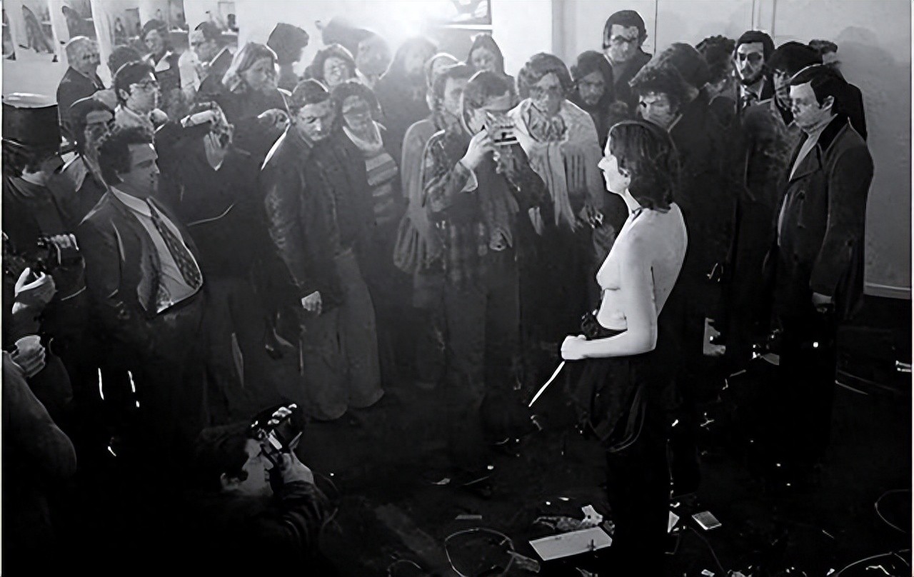 此刻的玛丽娜·阿布拉莫维奇在众人的眼中,不再是一条鲜活的生命,而是一个可以任由他们处置以取悦自己的工具。