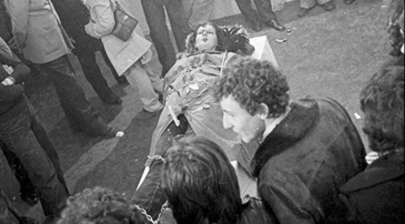 在六个小时时间里,路过的人们可以任意处置她的身体,而且不用背负任何道德和法律责任。