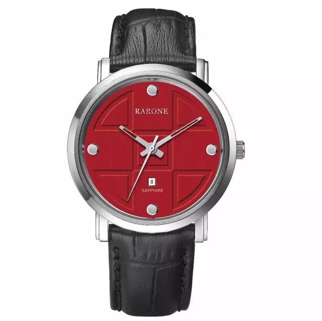 雷诺博系列腕表83815款,这款表设计灵感来源于上海世博会中国馆,表盘图案源自中国文化智慧—九宫格,结合时下流行的大表盘超薄表壳,将传统与时尚完美融合。红色是中国最具代表性的颜色,搭配黑色真皮表带,红与黑碰撞出独特的视觉效果。特别的是,该枚腕表采用适当的中性尺寸,男女皆可配搭。