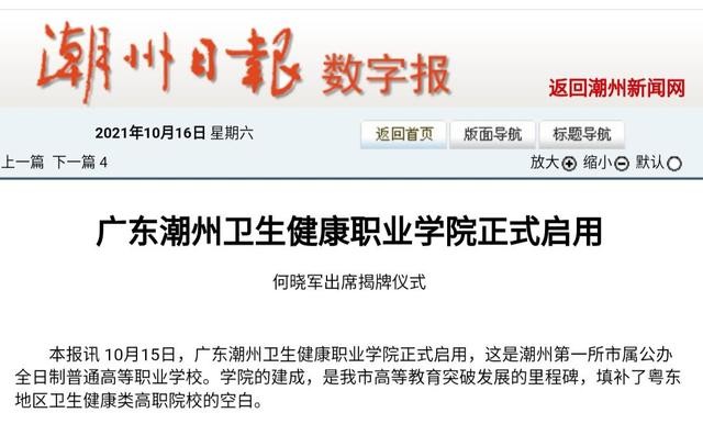 好消息传来了,潮州市迎来了一所新大学,据《潮州日报》的资料显示:“广东潮州卫生健康职业学院正式启用”,从而结束了当地没有公办高职高专学校的历史,更是填补了粤东地区卫生健康类院校的空白,意义非常重大。