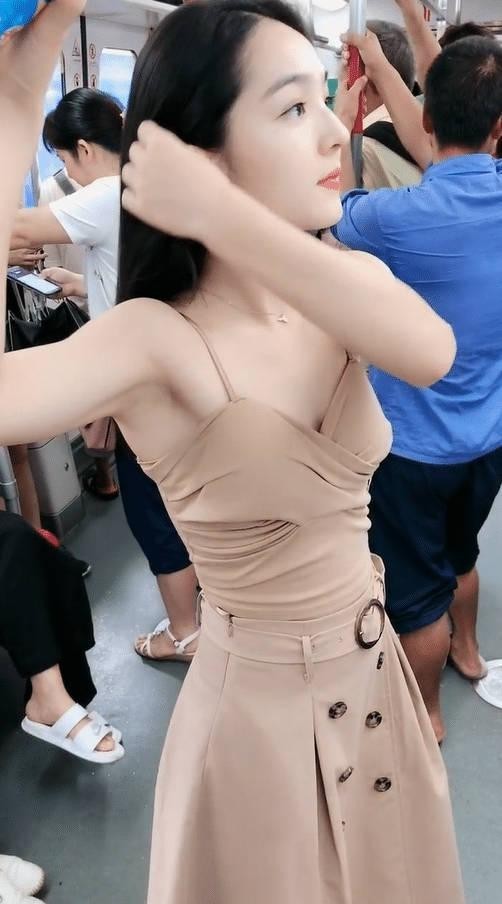穿着低胸衣服坐地铁,让男人目不转睛。他们眼睛不知道往哪看,既不好好看,也不敢不看。
