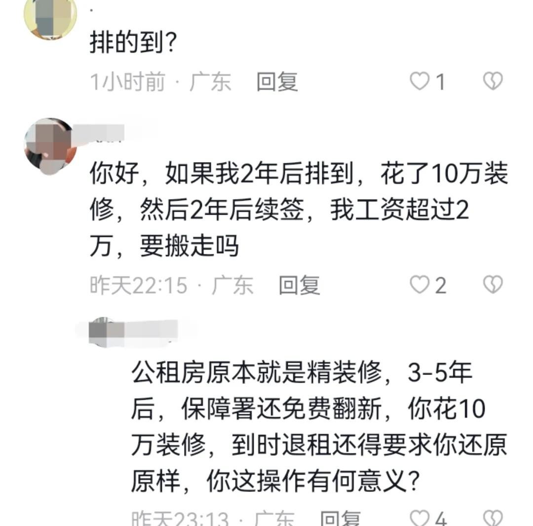 此外,还有网友想要重新装修公租房,但大家都建议不要装修,因为即使装修得再好,退房时也需要恢复原样。因为公租房本身也是精装修过的,所以没有必要重新装修。
