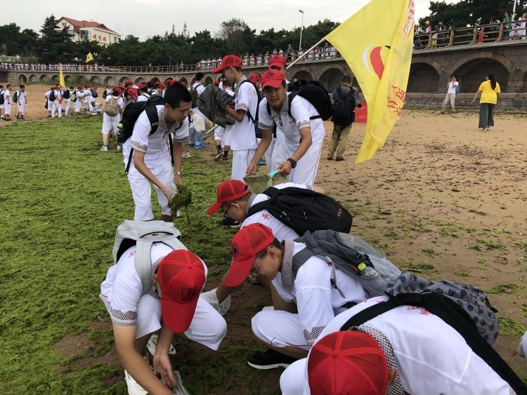 每逢开学军训时,青岛58中的徒步拉练都是岛城一道亮丽的风景线。今年的58中拉练继续从第一海水浴场向石老人海水浴场进发,总长约30公里。8月27日一大早,近700名高一新生身着白色校服、高举旗帜开启此次公益健步行活动。同学们途中活动多样,不仅演绎了《歌唱祖国》大合唱,还践行环保,沿途完成了清理浒苔、捡垃圾、擦雕塑、发放环保材料等公益活动。