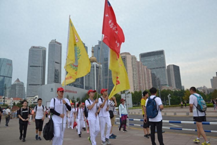 8月27日上午8时30分左右,青岛58中浩浩荡荡的白色“长龙”走过五四广场,各班级有序前行,旗帜飘扬、欢歌嘹亮、颇为壮观,吸引了众多市民和游客的注意。班主任及任课老师也跟随在每个班级队伍两侧,家长志愿者随行,一起挑战体力,经历这场高中开学前的意志力洗礼。