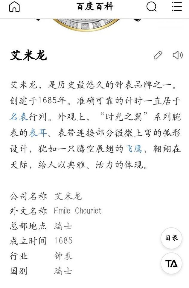 这是百度百科对艾米龙的介绍,妥妥的,瑞士历史悠久的大品牌有没有?
