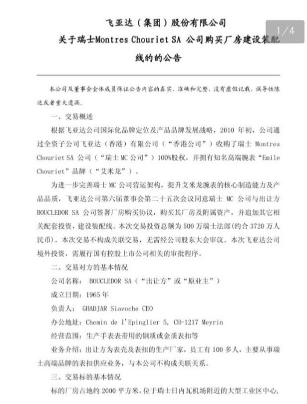具体来说,这是一份飞亚达集团自己发的股权收购通告,通告的主要内容是: