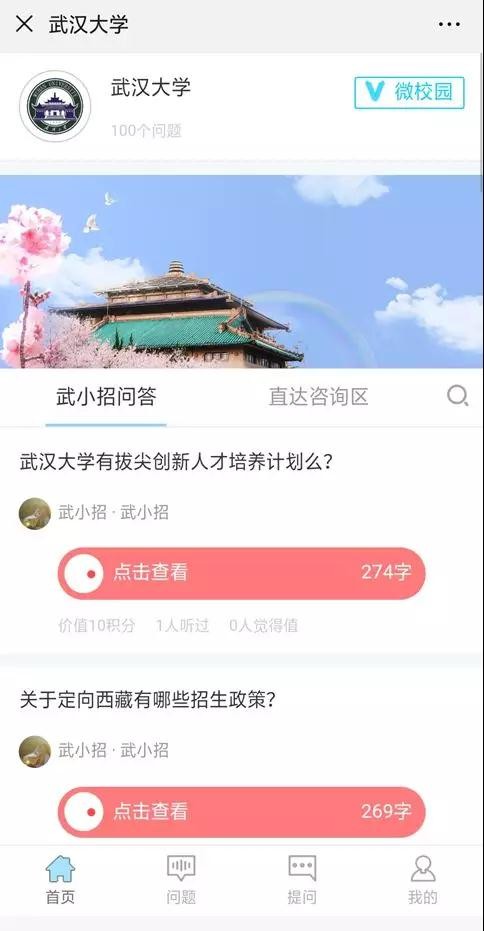"校园开放日pc端"与移动端内容基本一致,也为大家汇总了最新招生动态、热点武大、视觉珞珈、院系信息与咨询以及人才培养与成长等方方面面的内容。网页版也同样设有"武小招问答"和"院系咨询",为您"私人定制"解惑问答~