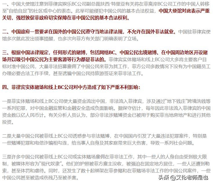 8月8日,我看到中国驻菲律宾大使馆就菲律宾BC业涉及中国公民的有关情况发布公告。
