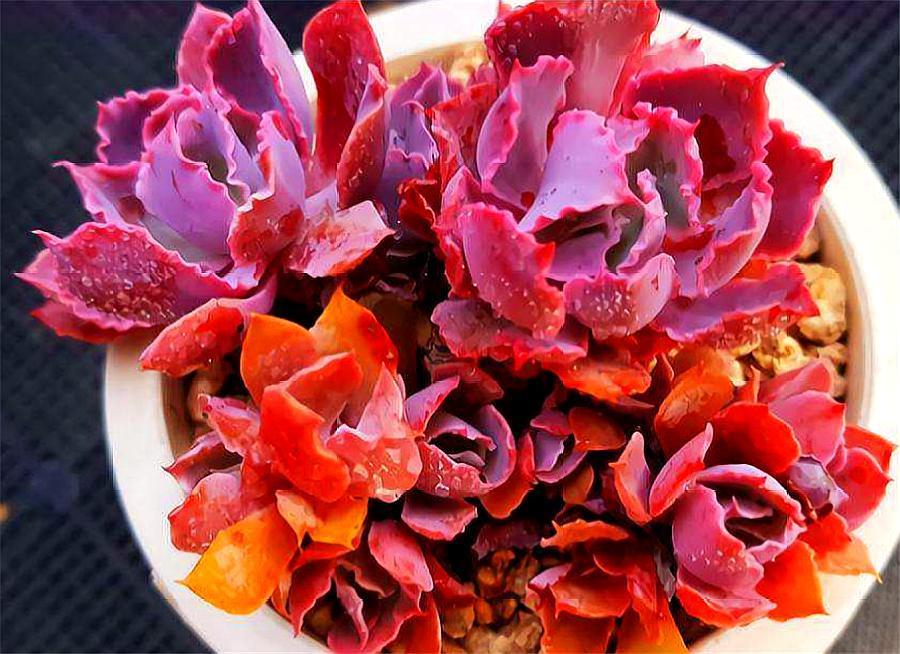 晚霞之舞是景天科拟石莲花属的多肉植物,它的叶片排列像盛开的莲花,叶片表面上有一层厚厚的白霜,在条件合适的情况下会变成粉色或者紫色,非常的高贵华美,而且晚霞之舞的叶片边缘有一些轻微的褶皱,看起来精致而又独特,那么如何才能养好晚霞之舞,让它颜色美变老桩呢?今天阿勇就来给大家说一说晚霞之舞养护过程中我们需要掌握的3个小技巧。