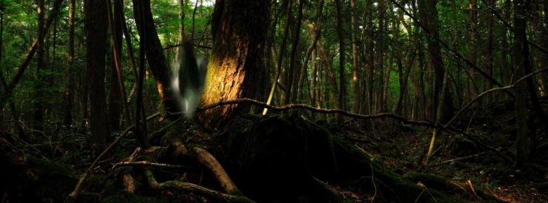 青木原森林,面积达35平方公里,位于富士山西北坡,也被称为海的树。这片森林是全球第二受欢迎的自杀地点,每年大约有100人进入森林后失踪。
