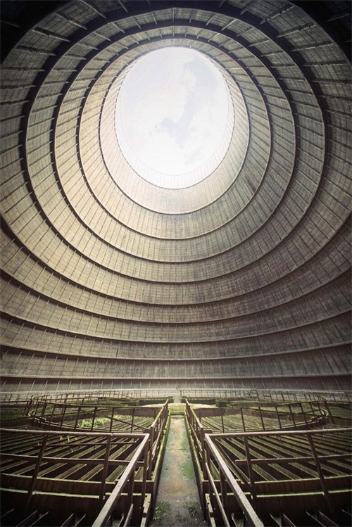 冷却塔的结构显得阴森,给人一种不寒而栗的感觉。