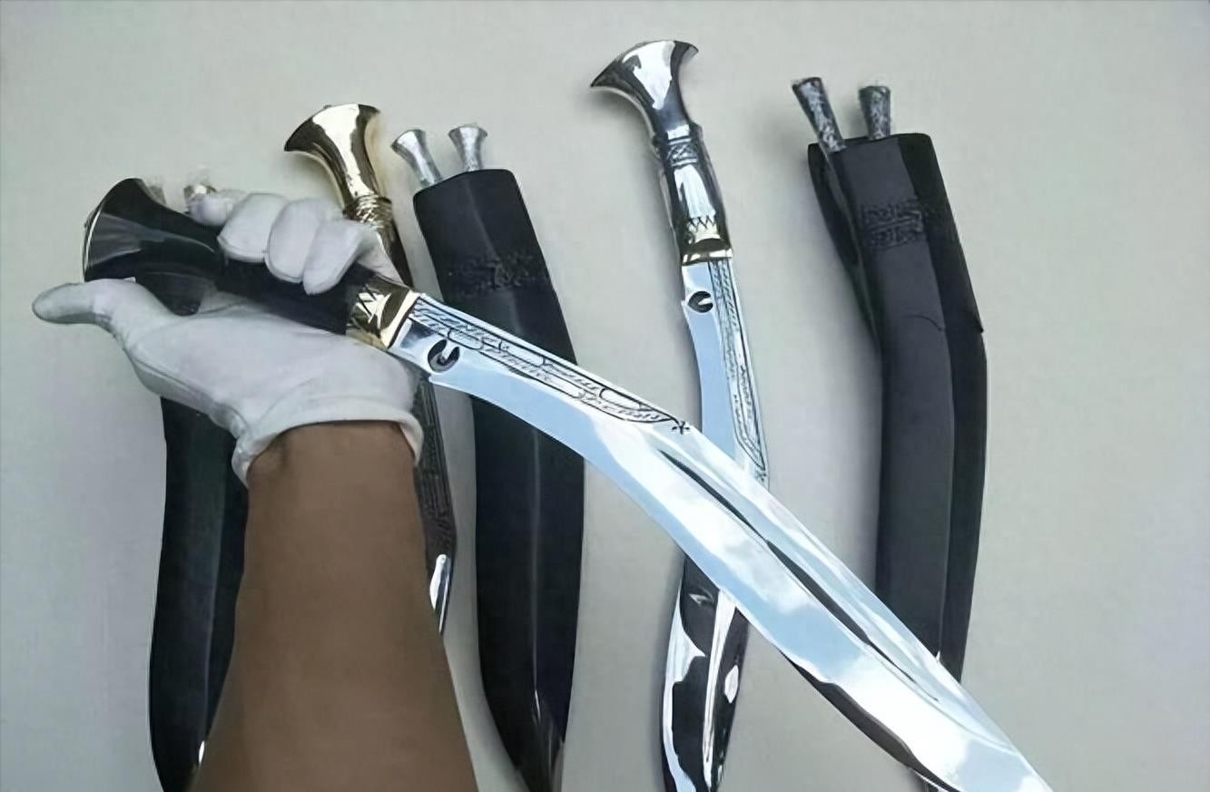 使其成为贵族和皇室的身份象征。第七名的冷兵器是尼泊尔库尔喀刀,也被称为库克里。尼泊尔库尔喀刀是尼泊尔传统的弯刀,具有独特的形状和历史。库尔喀刀采用夹点设计,刀尖窄细,