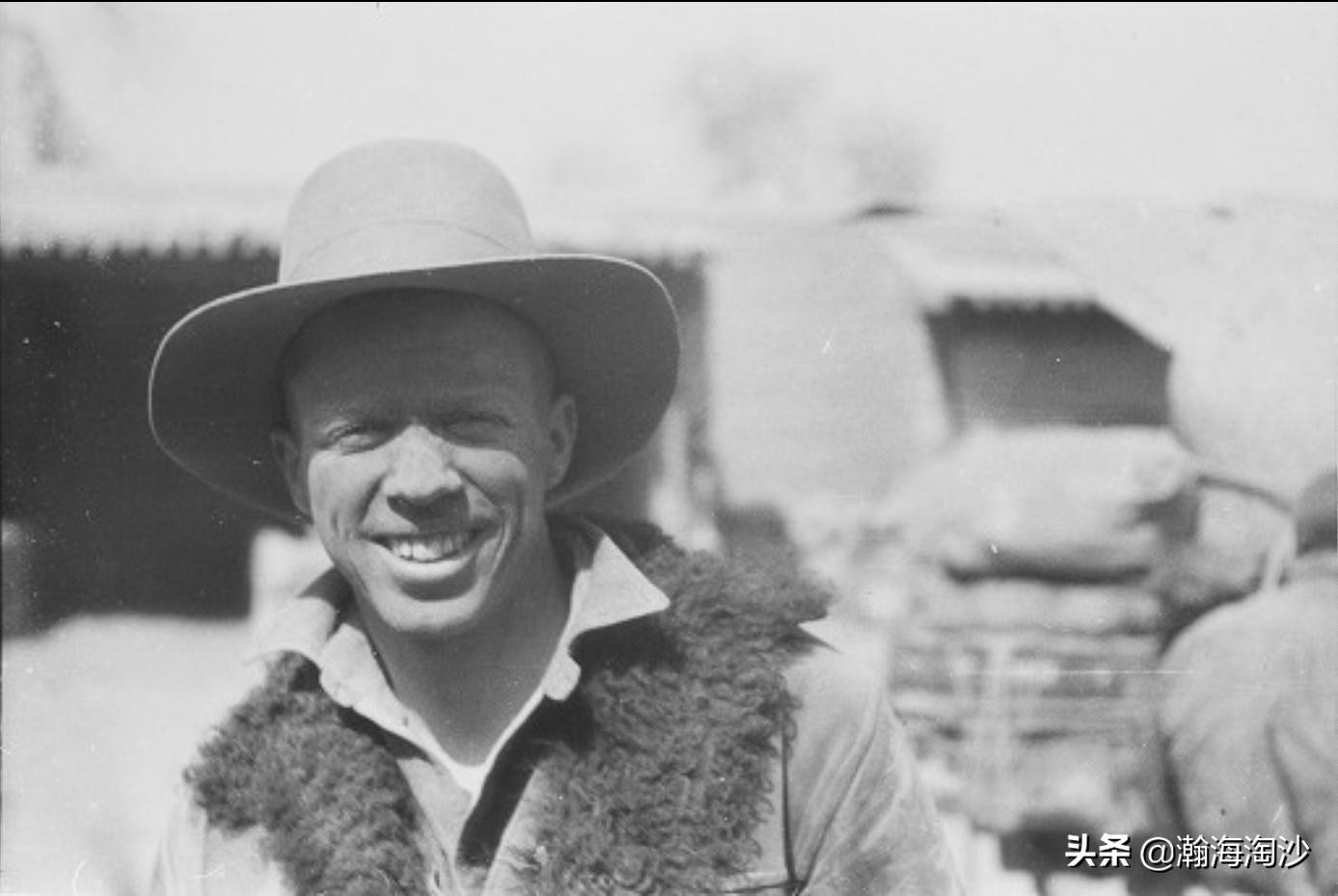 穿着皮外套的海牧师,东乡县,1934年