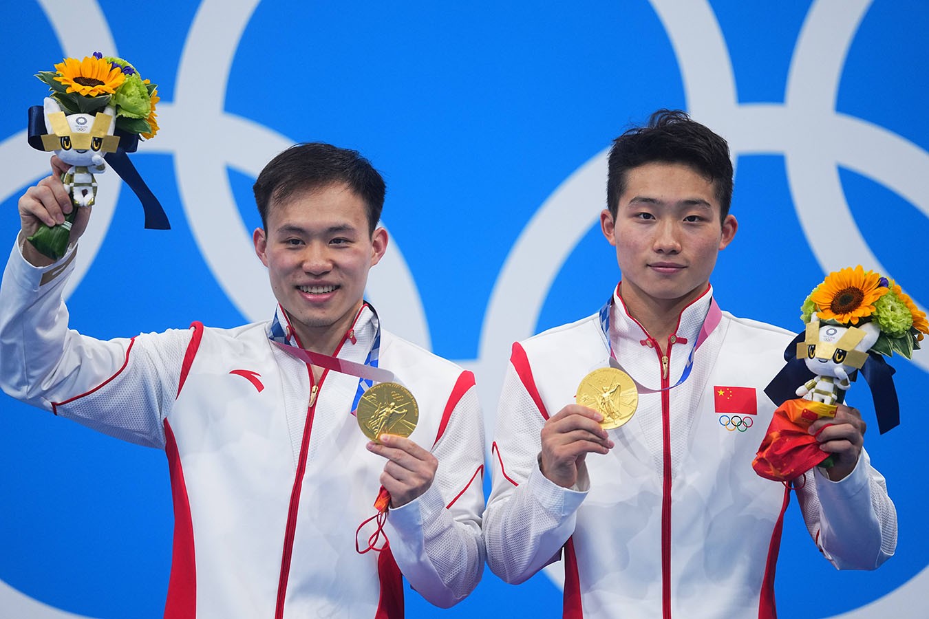 (2021年7月28日,中国选手谢思埸(左)/王宗源在东京奥运会颁奖仪式上)