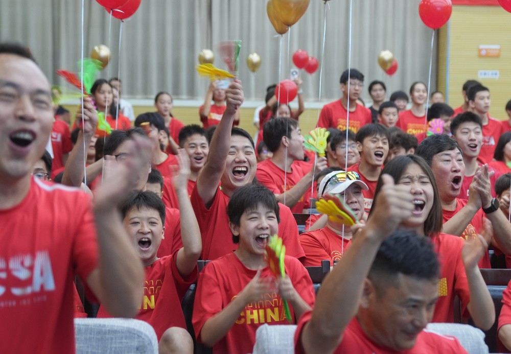 8月2日决赛当天,王宗源的父母王迎飞、赵毅被邀请至武汉市东湖湖北奥体中心,他们与数百名运动员、教练员观看赛事直播。