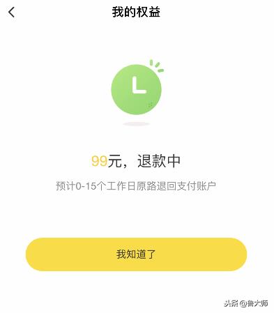 大概20天以前,朋友圈出现吐槽ofo小黄车退不了押金的情况,鲁sir琢磨着,虽然我的押金只有99块钱,好歹也能买不少大鸡腿呀!于是申请退押金,页面显示0-15个工作日退款......