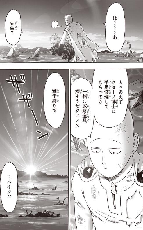 最后是让人惆怅的画面,经历了这么一大场战斗后,一切回归了安定与和平,怪人协会或者说是饿狼篇章也算是结束了,接下来就是进入到NEO英雄篇章了,不过让人扎心的事情,老师的家没了,后续应该会收黑精和波奇当宠物才对。