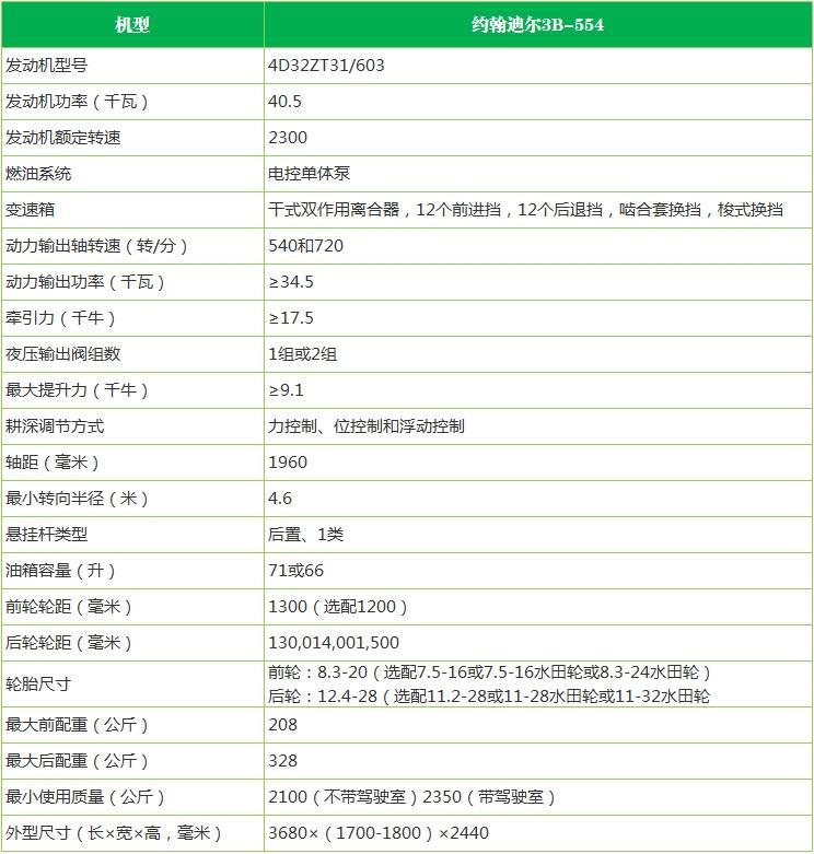 约翰迪尔3B-554拖拉机技术参数