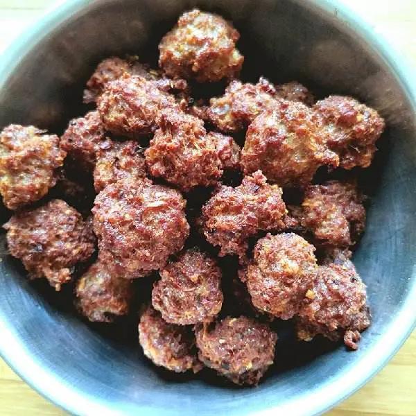 4、搅拌好的红萝卜肉末用手搓成丸子,放入小米中滚一圈。