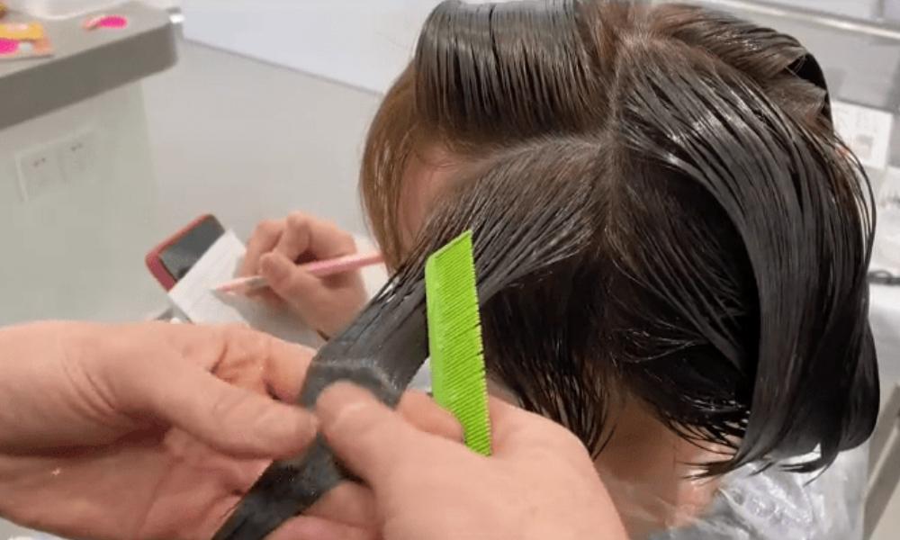 按摩的时候,也需要一片一片头发进行,发片不能分得太厚,太厚会影响按摩效果。按摩的顺序是从上向下,一个区一个区进行,按摩的过程如果头发变干,需要喷水保持湿润,效果才更好。