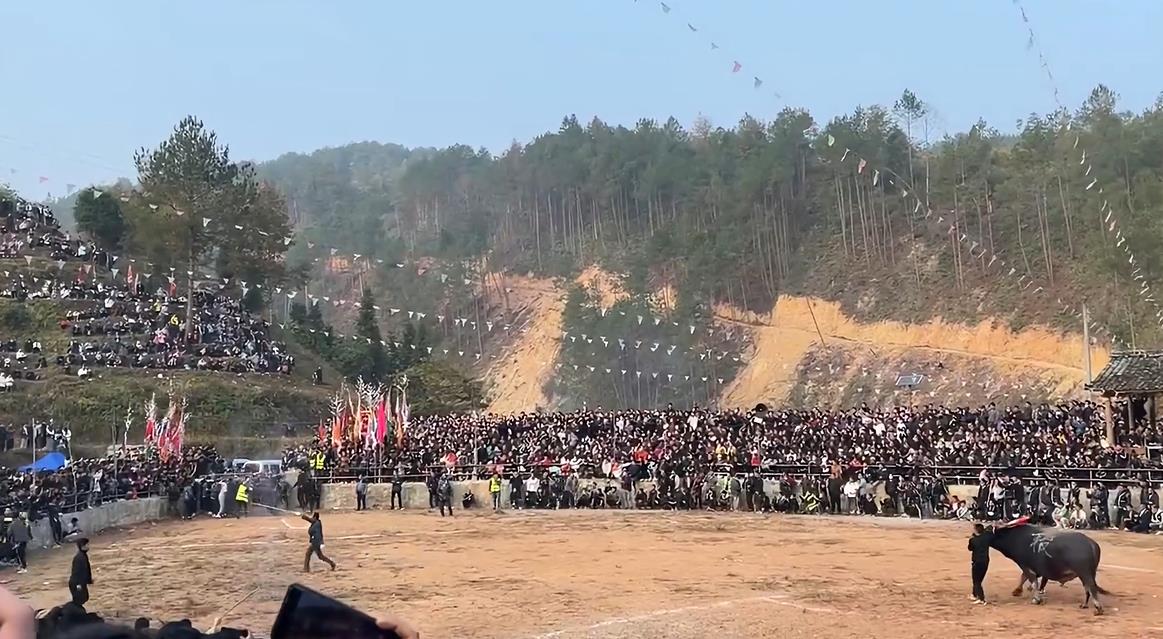 壮观!贵州乡村斗牛比赛气氛不输“村BA”,从业者:赛前灌烈酒