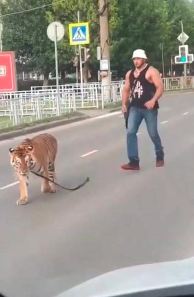 据俄罗斯生活新闻网7月16日报道,在俄罗斯伊万诺沃的马路上,一只老虎突然从车里跳到了马路中间,这一场面着实吓坏了路人。所幸的是,老虎并没有走远,主人很快追到它,把它带回了车里。