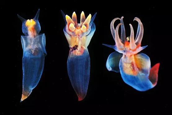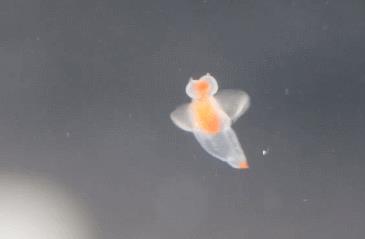 去日本旅游过的朋友对这个"海天使"一定并不陌生,因为它除了生活在南北两极的极寒海域下外,我们还经常在日本的北海道海域附近发现它们的踪迹,而在日本的水族馆等地都有展示可供观赏的裸海蝶。它们的身长只有3公分左右,还不足一个人手指头的长度,就算是发现的最大个体也不过10公分左右。在晶莹剔透的外表下,我们可以看见它身体内部的组织,位于身体上半部分的橙红色部位是它的生殖和消化器官,同样也是它心脏的所在位置,这鲜艳的部分与它透明的外表相得益彰,看起来像是闪闪发光的萤火虫,在海洋里显得楚楚动人。但在这个美丽动人的"天使"外表下,其实还藏着它们鲜为人知的另外一面——"恶魔"。
