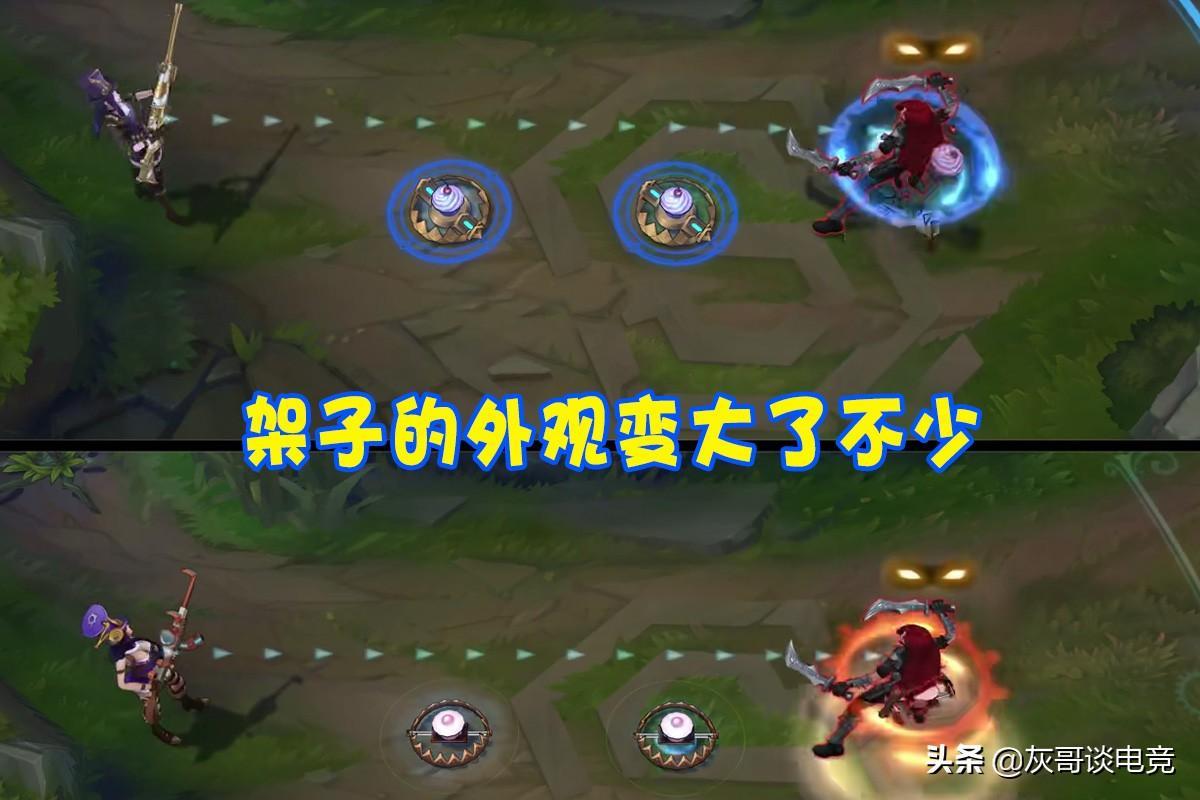 新版女警不仅在人物模型、皮肤上做了改动,就连技能的展示效果也与旧版不同,其中区别最大的便是W技能约德尔诱捕器,新版约德尔诱捕器外形更加具有科技感,同时周围多出了两层明显的光圈,整体看起来比旧版要大了许多。作为一个陷阱类技能,在触发判定范围相同的情况下,外形自然是越小越好,旧版约德尔诱捕器的判定圈比较隐蔽,敌人很容易失误踩上去,包括在草丛里也不容易看见,但新版改得这么明显,绝对是一个负优化。