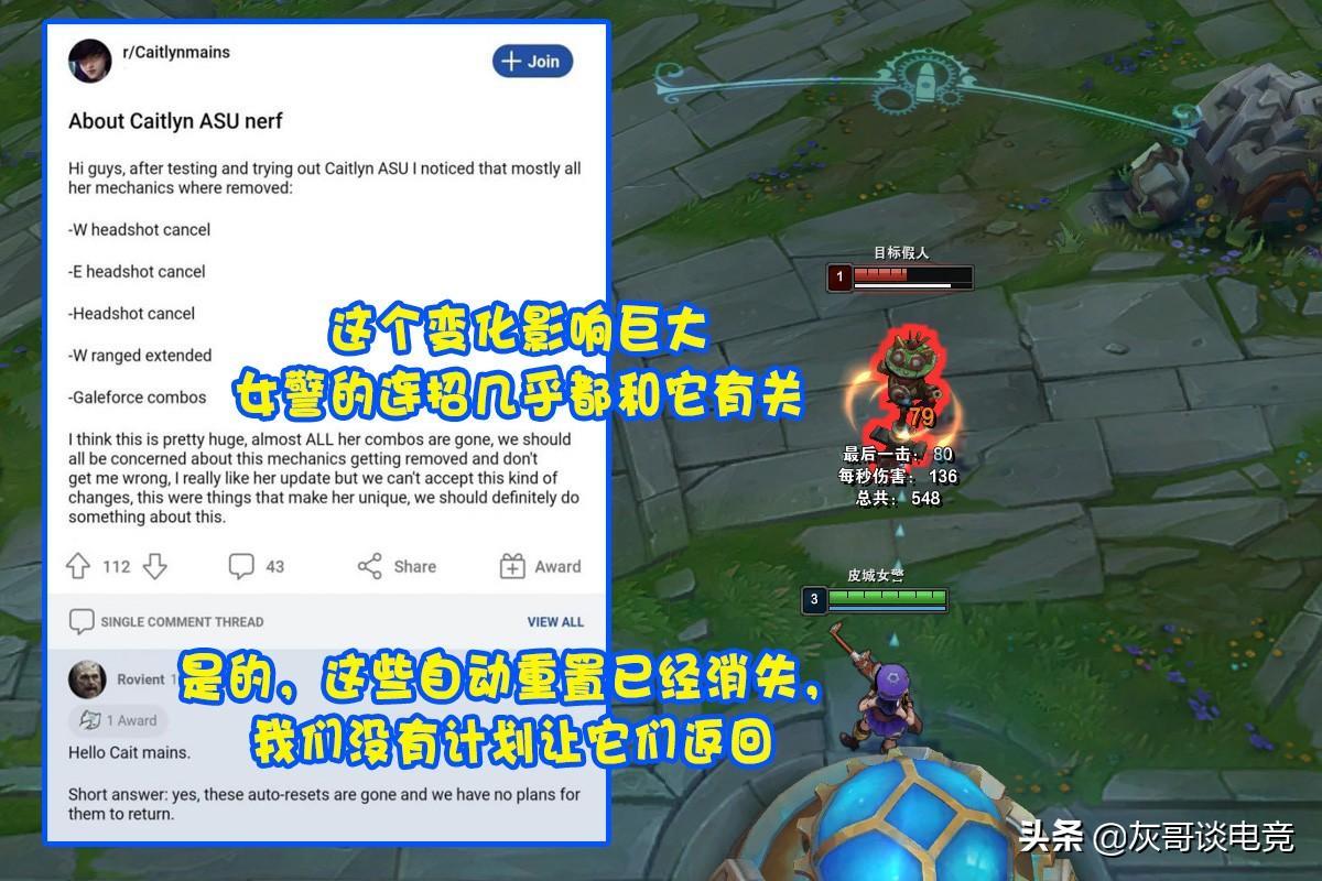这一机制的移除对前中期女警强度影响巨大,卡墙EA、快速爆头等瞬间爆发连招都将成为历史,在攻速尚未成型时操作手感会非常难受,灰哥感觉新版本女警可能得放弃收集者了。