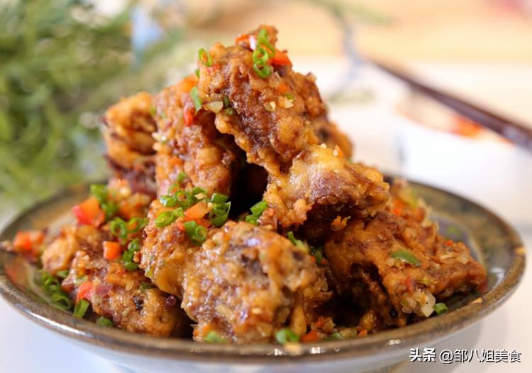 炸好后再升高油温复炸一次,排骨捞出待用。