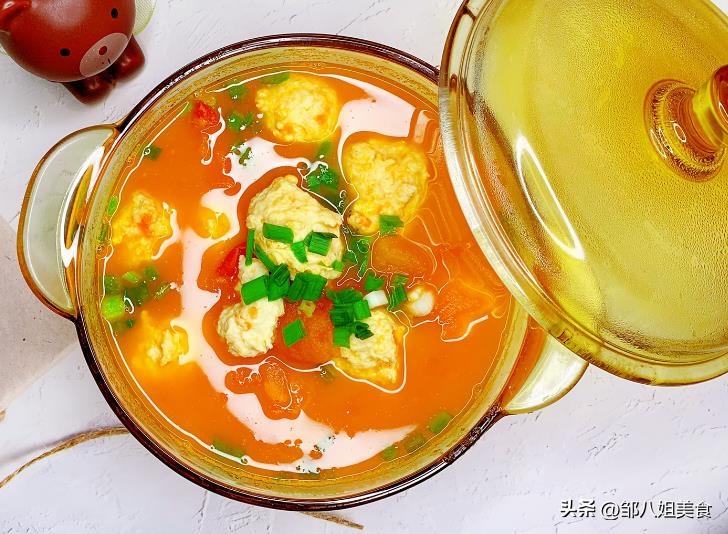 煮到丸子熟透后,加盐、鸡精调味,再撒点葱花,这道汤就做好了。