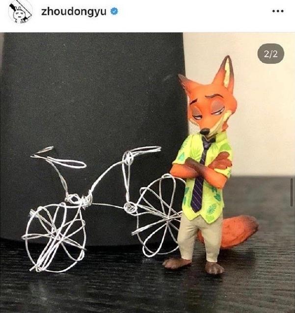 还有更多巧合的细节,比如说周冬雨和易烊千玺都用同样的一个小黄花图标,以及易烊千玺之前都不用的一个表情,结果拍完《少年的你》之后就开始用了,而且这个表情恰好是周冬雨最喜欢用的,以及易烊千玺说,最喜欢疯狂动物城的玩偶,还说自己小时候爱用铁丝绑娃娃,有一张照片手上还拿着铁丝,周冬雨ins晒了疯狂动物城的尼克和铁丝绑成的自行车……